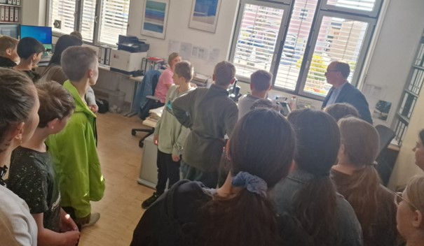 Die Klasse 6a hatte eine lehrreiche Erfahrung, als sie das Rathaus besuchte, um mehr über die Rolle des Bürgermeisters zu erfahren. Bürgermeister Martin Hiergeist führte die Schüler persönlich durch die verschiedenen Abteilungen und erklärte die täglichen Abläufe und Aufgaben, die im Rathaus anfallen. Die Schüler hatten die Möglichkeit, Mitarbeitern Fragen zu stellen und so einen direkten Einblick in die Verwaltung ihrer Gemeinde zu bekommen.